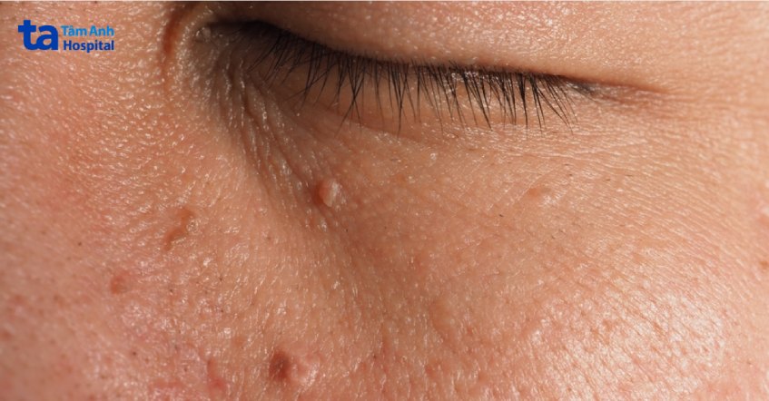 Mụn thịt, hay còn gọi là acrochordons, thường xuất hiện ở những vùng da nhạy cảm như quanh mắt, cổ, hoặc nách. Chúng thường không gây hại nhưng có thể làm bạn cảm thấy thiếu tự tin, đặc biệt khi nằm ở vị trí dễ thấy như mắt. Nếu bạn nhận thấy những nốt mụn nhỏ li ti màu trắng hoặc màu da xung quanh mắt và cảm thấy lo lắng, hãy nhờ bác sĩ da liễu tư vấn.