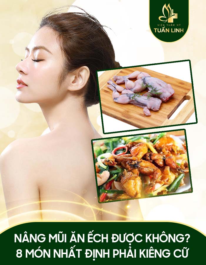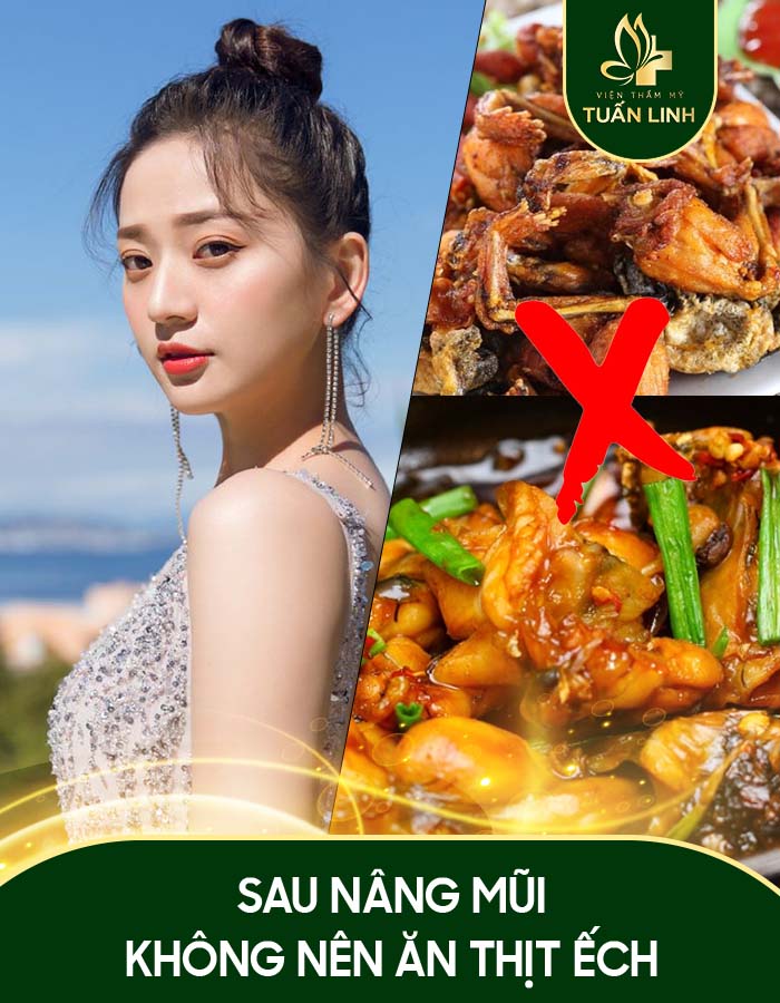 Sau khi nâng mũi, nhiều người thường thắc mắc liệu có thể ăn thịt ếch hay không. Theo khuyến cáo từ các bác sĩ thẩm mỹ, bạn nên kiêng ăn thịt ếch ít nhất từ 2 đến 4 tuần sau phẫu thuật. Thịt ếch là thực phẩm có khả năng gây dị ứng và kích ứng, có thể ảnh hưởng đến quá trình hồi phục, làm tăng tình trạng sưng viêm.