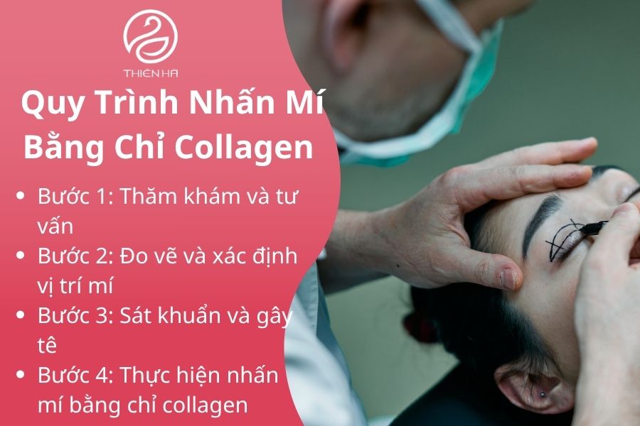 Nhấn mí collagen là một kỹ thuật làm đẹp đang được nhiều người ưa chuộng nhờ sự tiện lợi và an toàn của nó. Phương pháp này sử dụng chỉ vi sợi collagen siêu nhỏ, giúp tạo nếp mí tự nhiên mà không cần phải phẫu thuật. Chỉ cần luồn sợi chỉ qua các điểm đã được đánh dấu trên mí, bạn đã có ngay đôi mắt 2 mí đẹp, to tròn và thu hút.