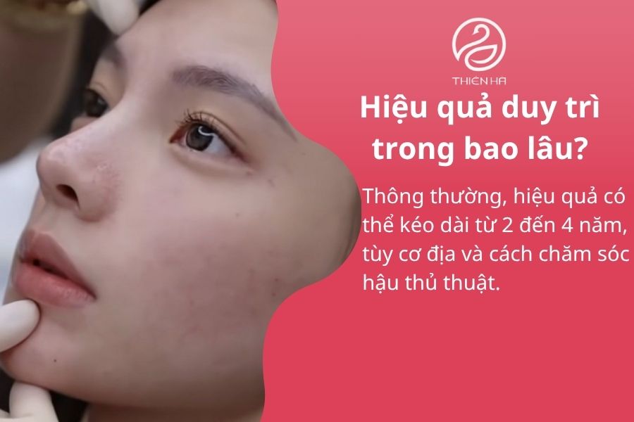 Điểm cộng lớn của kỹ thuật này là bạn không cần tốn nhiều thời gian nghỉ dưỡng, vì chỉ mất khoảng 15-20 phút để thực hiện, và không để lại sẹo. Hiệu quả của nhấn mí có thể kéo dài từ 2 đến 5 năm, tùy thuộc vào cơ địa và chế độ chăm sóc của mỗi người. Vậy nên, hãy chăm sóc thật tốt để giữ được nếp mí đẹp lâu dài nhé!