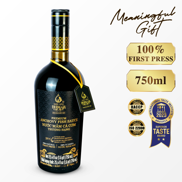 Nước Mắm Hoàng Gia không chỉ đơn thuần là một gia vị, mà còn là niềm tự hào của ẩm thực Việt Nam. Được vinh danh với giải thưởng “Superior Taste Award”, đây là nước mắm truyền thống đầu tiên đạt được sự công nhận quốc tế. Sản phẩm được chắt lọc từ 100% cá cơm tươi và muối biển, ủ chượp tự nhiên không chất bảo quản, bảo đảm giữ trọn vẹn hương vị và giá trị dinh dưỡng.