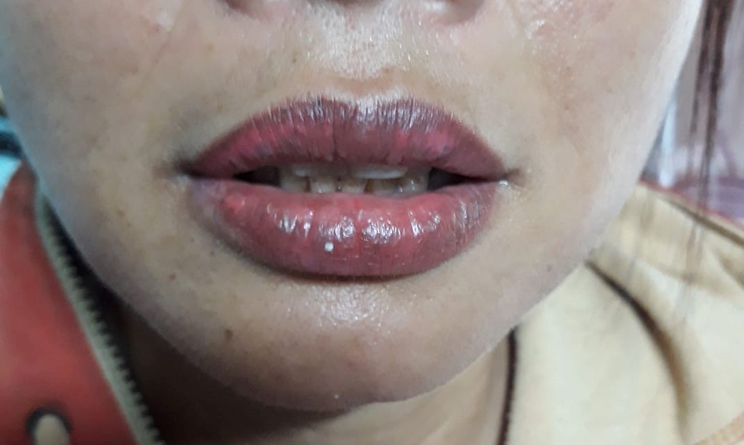 Phun môi bị cháy tê là một hiện tượng không mong muốn mà nhiều người gặp phải sau khi thực hiện phun môi. Một trong những dấu hiệu rõ ràng nhất là sự xuất hiện của các bọng nước nhỏ hoặc mụn li ti trên bề mặt môi. Điều này không chỉ làm giảm tính thẩm mỹ của môi mà còn có thể gây ra cảm giác đau rát khó chịu.