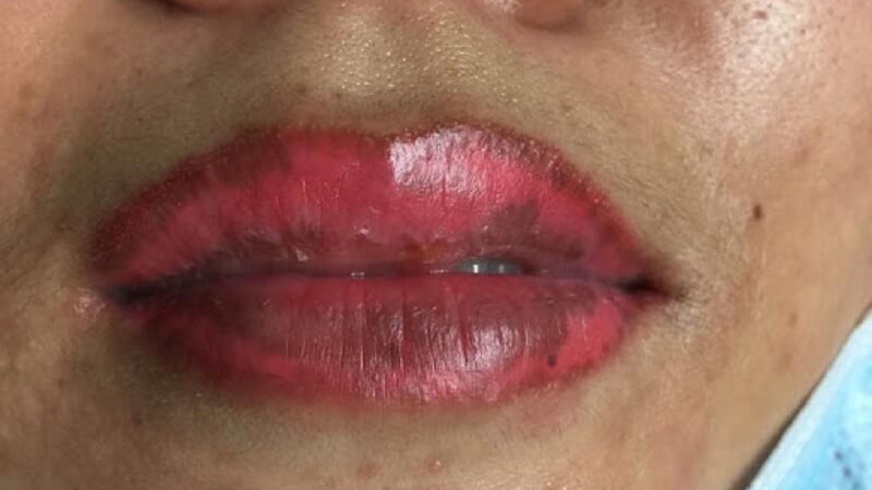 Phun môi bị cháy tê là hiện tượng khá phổ biến, không phải ai cũng biết đến. Đây là tình trạng môi bị tổn thương niêm mạc do phản ứng quá mạnh với thuốc tê hoặc kỹ thuật ủ không đúng cách. Khi đó, da môi có thể xuất hiện những nốt mụn nước, sưng đỏ và bong tróc, gây khó chịu cho người vừa thực hiện.