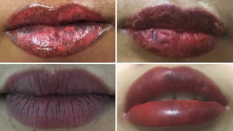 Ngoài ra, nếu bạn nhận thấy môi mình bong vảy sớm hơn bình thường hoặc màu mực lên không đều, đây cũng là dấu hiệu cảnh báo về việc ủ tê không đúng cách. Môi có thể trở nên thâm đen, loang lổ và không đều màu, khiến bạn cảm thấy thất vọng.