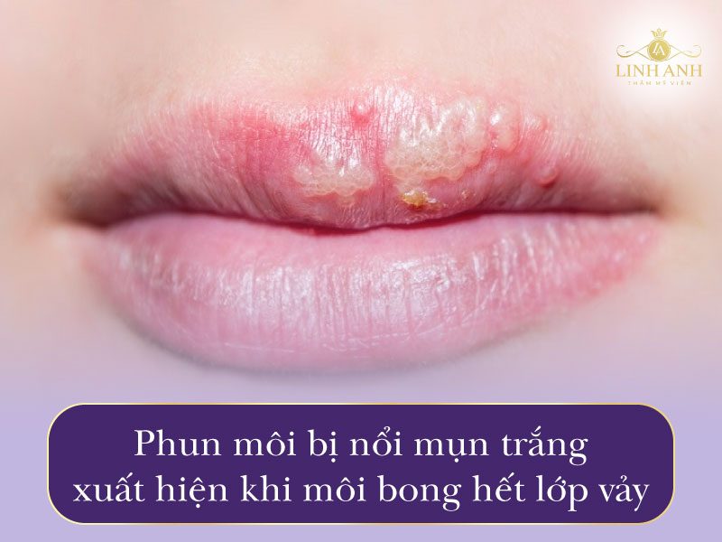 Sau khi phun môi, nếu bạn thấy nổi mụn trắng, điều này có thể do nhiều nguyên nhân khác nhau, từ việc chăm sóc sai cách đến kỹ thuật phun xăm không đảm bảo. Những mụn này thường là hạt Herpes hoặc fordyce. Hạt Herpes là mụn nước có thể gây đau và lở loét nếu vỡ ra.