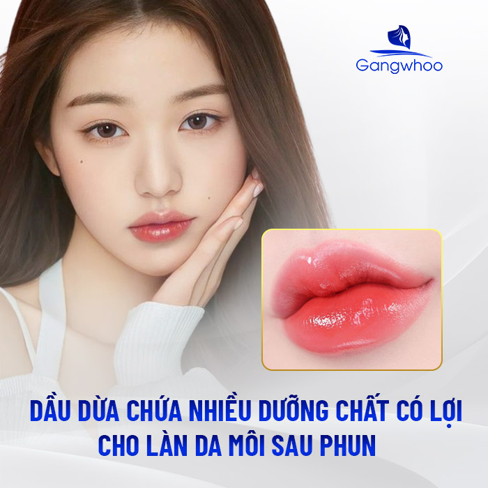 Sau khi phun môi, việc chăm sóc đúng cách là rất quan trọng để đảm bảo môi hồi phục nhanh chóng và giữ màu bền lâu. Dầu dừa là một trong những sản phẩm tự nhiên có khả năng kháng viêm, chống nhiễm khuẩn hiệu quả, nhưng cần lưu ý không nên bôi quá sớm. Ngay trong những ngày đầu, nếu sử dụng dầu dừa, bạn có thể làm ảnh hưởng đến màu môi hoặc tăng nguy cơ kích ứng.