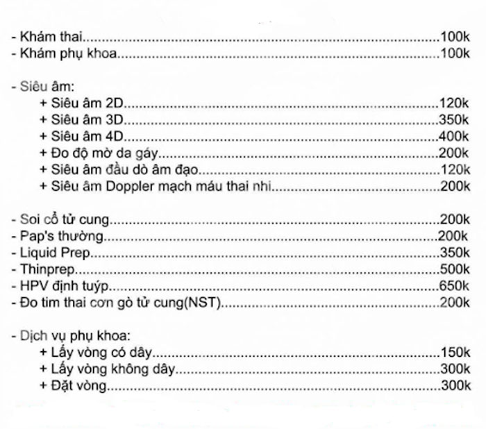 Bảng giá siêu âm hiện nay khá đa dạng tùy theo loại siêu âm và giai đoạn thai kỳ. Ví dụ, siêu âm thai 2D thường có mức giá dao động từ 120.000 đến 180.000 đồng mỗi lần, tùy thuộc vào thời điểm thai nhi được kiểm tra như 3 tháng đầu, giữa hay cuối thai kỳ. Siêu âm Doppler, giúp đánh giá tuần hoàn máu của thai và nhau thai, có giá cao hơn, khoảng từ 200.000 đến 220.000 đồng mỗi lần. Ngoài ra, các loại siêu âm 3D hoặc 4D thường có chi phí cao hơn, từ 300.000 đến 400.000 đồng, vì sử dụng công nghệ hình ảnh hiện đại hơn.
