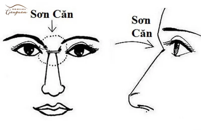 Sơn căn là một điểm quan trọng trên khuôn mặt, nằm giữa hai con mắt và ngay dưới ấn đường. Đây chính là phần cao nhất của sống mũi, tạo nên sự kết nối giữa trán và mũi. Để xác định chính xác vị trí của sơn căn, bạn chỉ cần soi gương: nơi có lõm nhẹ, nằm giữa hai đầu mắt và đầu mũi chính là sơn căn của bạn.