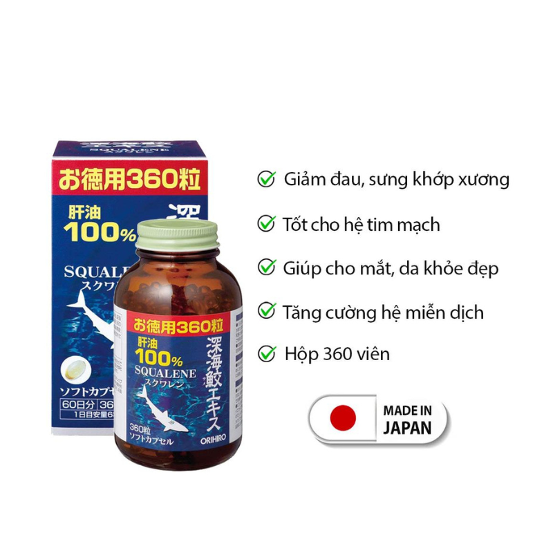 Nếu bạn đang tìm kiếm sụn vi cá mập chất lượng cao, sản phẩm Orihiro Squalene từ Nhật Bản là một lựa chọn tuyệt vời. Với 360 viên trong mỗi hộp, sản phẩm này chứa chiết xuất sụn cá mập và dầu gan cá mập, giúp hỗ trợ sức khỏe xương khớp hiệu quả. Squalene cao trong viên uống này còn giúp bảo vệ tim mạch và cải thiện sức khỏe tổng thể.
