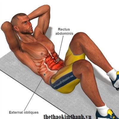 Để tập cơ bụng dưới đúng cách, bạn có thể bắt đầu với động tác đơn giản nhưng hiệu quả. Trước tiên, hãy nằm ngửa, co đầu gối và đặt hai bàn chân trên sàn. Đặt tay phải sau đầu, khuỷu tay xòe ra và lòng bàn tay trái ôm lấy thân mình. Hãy co cơ bụng, từ từ nâng vai lên cách mặt sàn khoảng 10cm. Giữ tư thế này trong vài giây và thả lỏng.