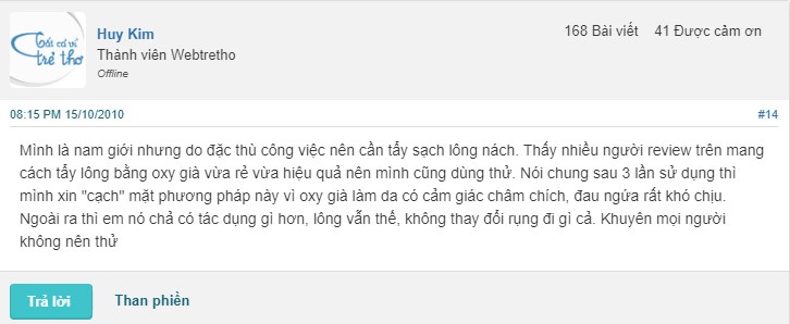 Tóm lại, tẩy lông bằng oxy già đã trở thành một chủ đề được nhiều người quan tâm trên diễn đàn Webtretho. Phương pháp này không chỉ đơn giản, dễ thực hiện mà còn có chi phí thấp, thích hợp cho những ai muốn tiết kiệm thời gian và tiền bạc. Tuy nhiên, người dùng cần cẩn trọng với loại da của mình và thực hiện các biện pháp an toàn để tránh kích ứng. Hy vọng rằng những thông tin chia sẻ sẽ giúp mọi người đưa ra quyết định đúng đắn và tìm được phương pháp tẩy lông phù hợp nhất cho bản thân.