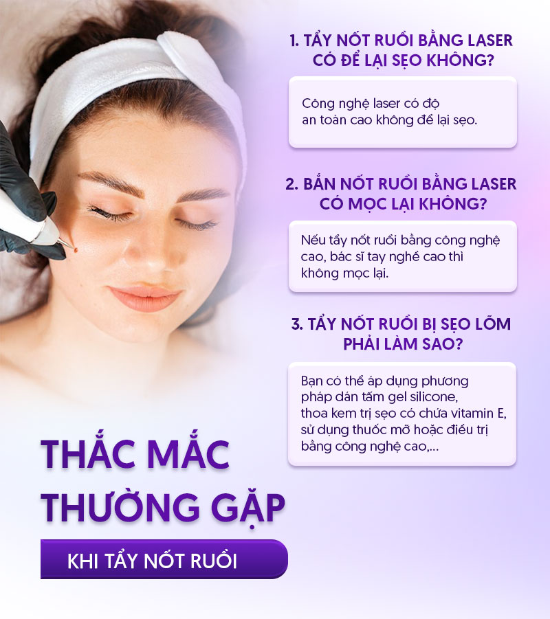 Theo Ths.BS Nguyễn Hồng Sơn, trong một số trường hợp, việc tẩy nốt ruồi bằng laser có thể để lại sẹo và có tỷ lệ tái phát cao. Điều này quan trọng để bạn cân nhắc trước khi quyết định thực hiện. Công nghệ laser CO2 siêu xung đảm bảo không gây đau đớn hay chảy máu, chỉ tác động lên tế bào sắc tố ở lớp da, nên bạn có thể yên tâm về tính an toàn của liệu pháp này.