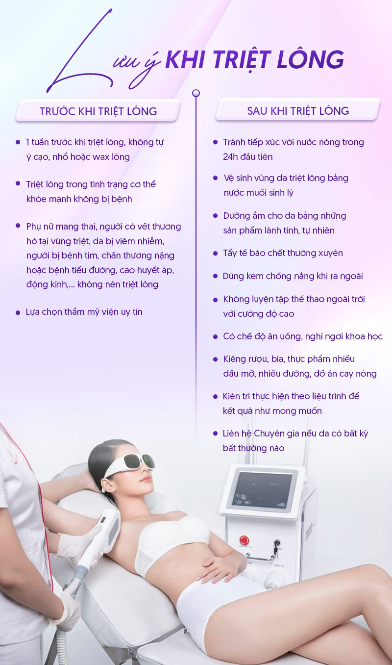 Sau mỗi buổi triệt, vùng da dưới cánh tay cần được chăm sóc kỹ để tránh kích ứng, thường là làm mát và giữ vệ sinh sạch sẽ. Việc triệt lông không phải là một lần làm xong mà cần kiên trì theo đúng liệu trình để loại bỏ tận gốc nang lông, giúp bạn tự tin hơn với làn da mịn màng, không còn lo ngại về lông nách.