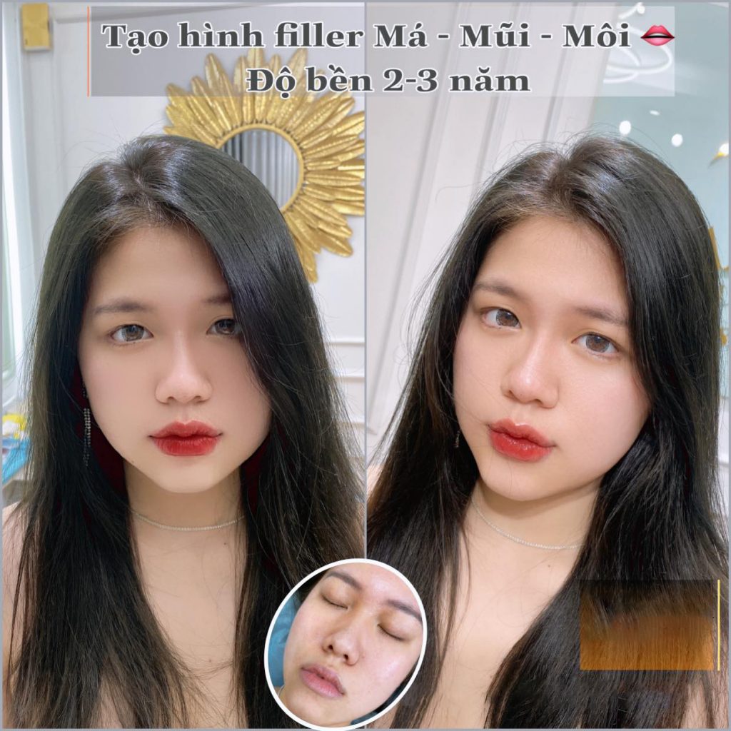Filler, chất làm đầy được sử dụng, giúp làm mịn và làm đầy các vùng má lõm, tạo cảm giác tự nhiên và hài hòa cho gương mặt. Quá trình tiêm filler diễn ra khá nhanh chóng, chỉ cần một chút thời gian bạn đã có thể thấy được sự khác biệt rõ rệt. Tuy nhiên, cần lưu ý rằng hiệu quả chỉ kéo dài từ 6 tháng đến 2 năm, tùy thuộc vào cơ địa mỗi người.