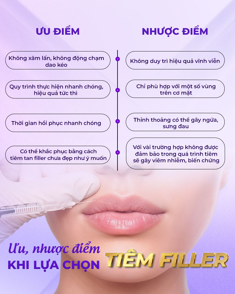 Ngoài ra, bạn cũng nên lưu ý rằng tiêm filler môi không phải là phương pháp duy trì vĩnh viễn, thường kết quả giữ được từ 1 đến 2 năm. Vì vậy, việc lựa chọn loại filler phù hợp với túi tiền và nhu cầu làm đẹp là rất quan trọng để vừa đảm bảo an toàn, vừa đạt hiệu quả thẩm mỹ như mong muốn. Trước khi tiêm, nên tham khảo kỹ ý kiến bác sĩ và chọn cơ sở uy tín để tránh rủi ro không đáng có.