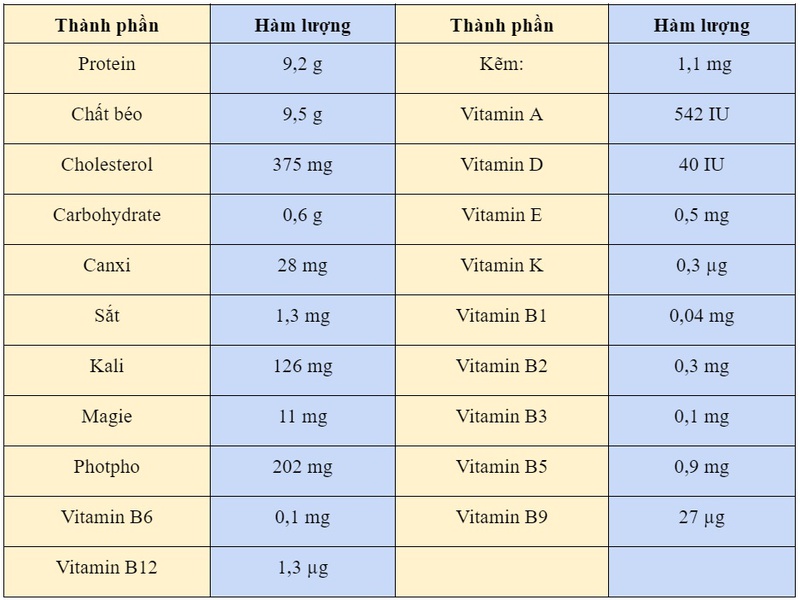 Trứng vịt là một thực phẩm tuyệt vời với nhiều giá trị dinh dưỡng cao. Mỗi quả trứng vịt cung cấp khoảng 130 – 185 kcal, chủ yếu đến từ chất béo và protein. Thực tế, trứng vịt chứa khoảng 14g chất béo, với lượng cholesterol cao lên tới 295% giá trị dinh dưỡng hằng ngày, điều này cần được cân nhắc khi sử dụng.