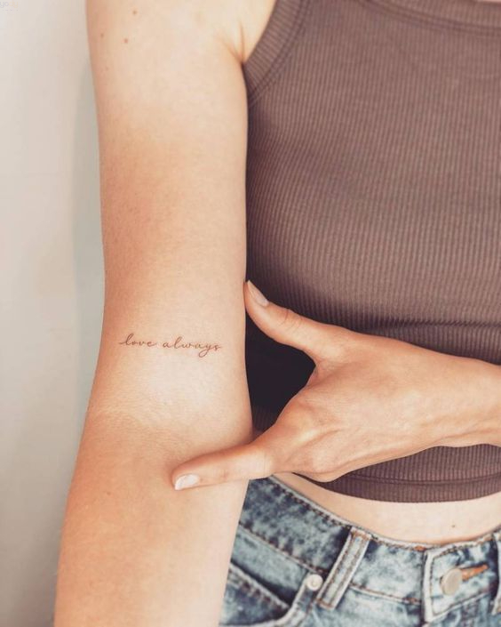 Hình xăm chữ mini ở bắp tay nữ đã trở thành xu hướng không thể bỏ qua cho những cô gái yêu thích việc làm đẹp và thể hiện cá tính. Những hình xăm nhỏ nhắn và thanh thoát không chỉ tạo điểm nhấn trên cơ thể mà còn toát lên vẻ quyến rũ, tinh tế. Đặc biệt, hình xăm chữ với font mảnh mai thường truyền tải những thông điệp ý nghĩa và sâu sắc.