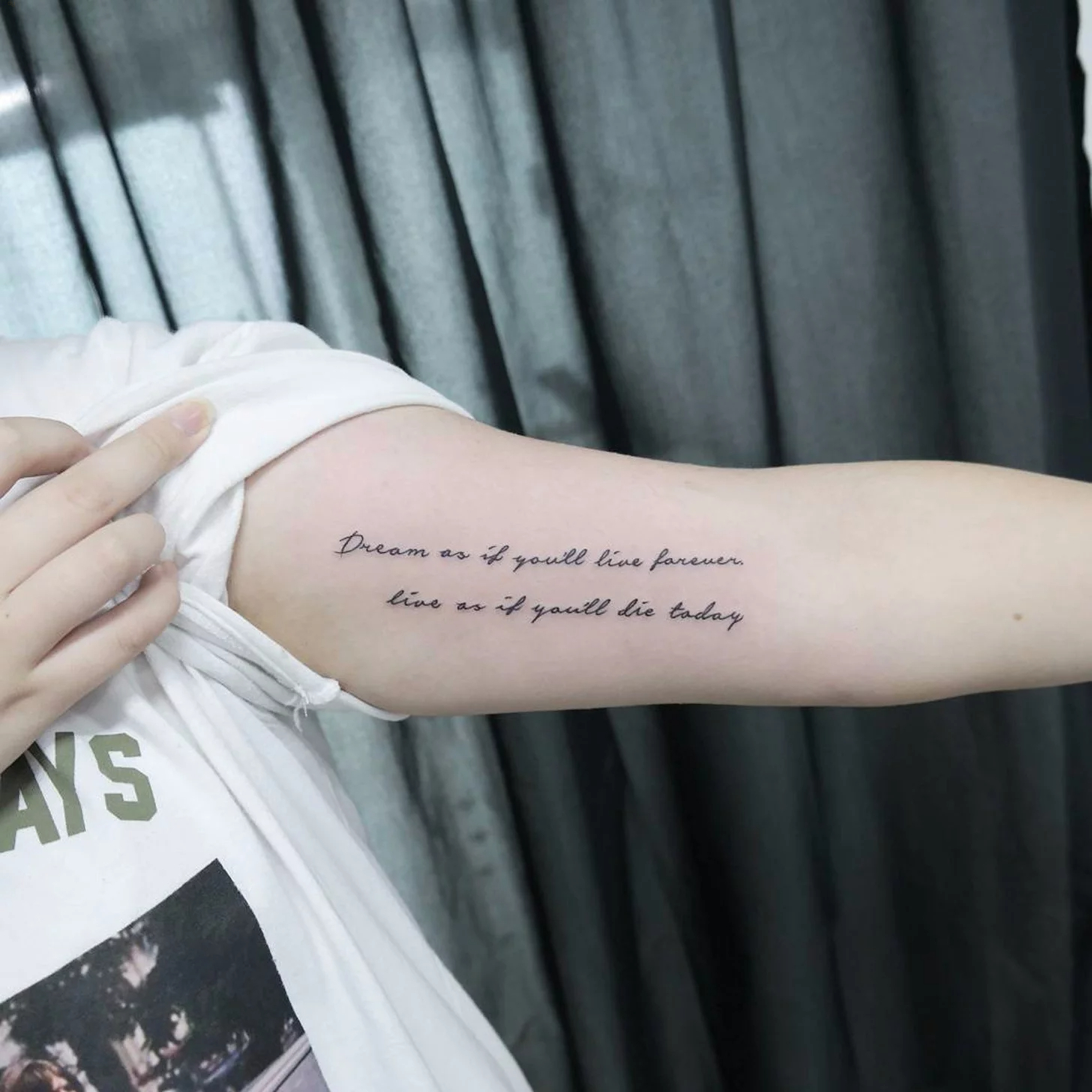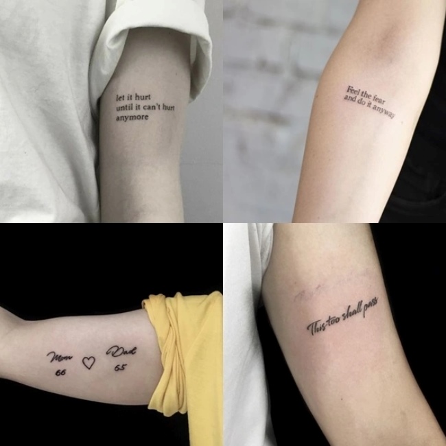 Điều đặc biệt là hình xăm chữ bắp tay thường có khả năng thể hiện cá tính và phong cách riêng của mỗi người. Bạn có thể lựa chọn những câu trích dẫn ý nghĩa, tên người thân yêu hoặc thậm chí là những thông điệp tự nhắc nhở bản thân. Hình xăm không chỉ là trang trí, mà còn là sự bày tỏ mạnh mẽ về cảm xúc và góc nhìn cá nhân.