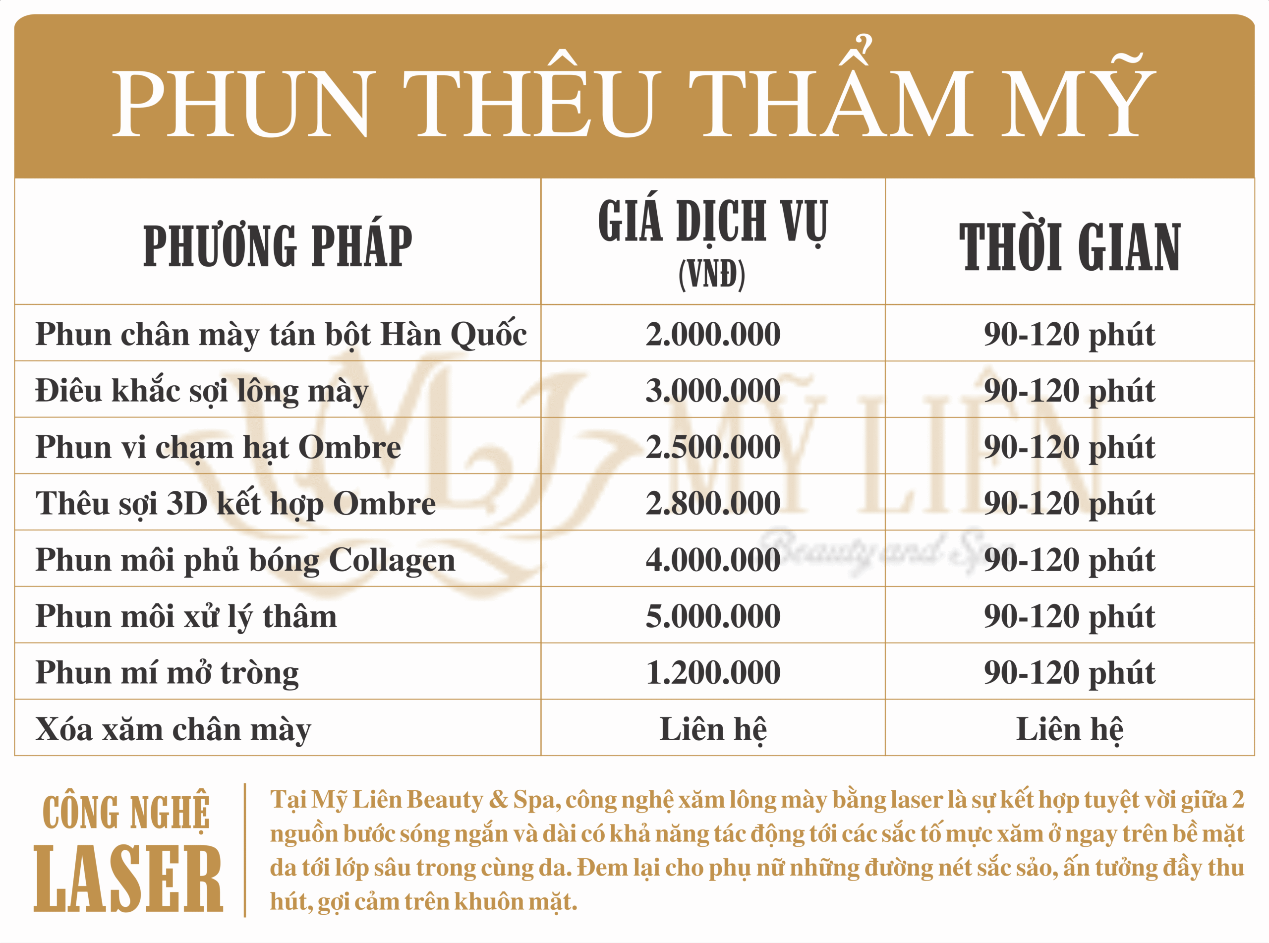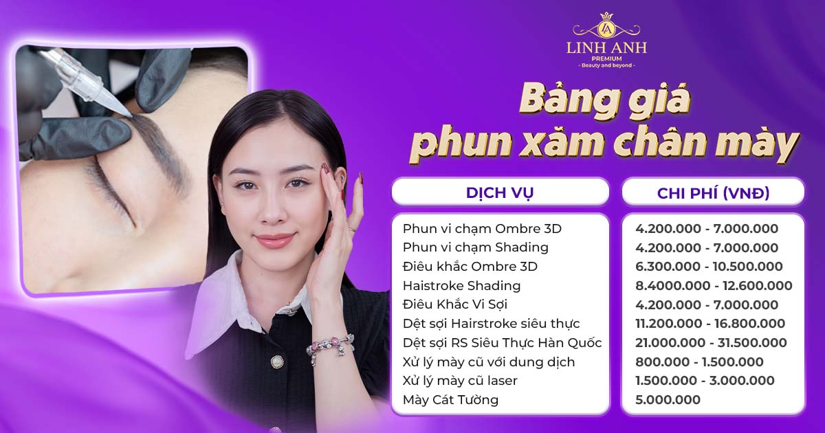 Nếu bạn đang tìm kiếm dịch vụ phun mày chất lượng, Thẩm mỹ Quốc tế Linh Anh cung cấp bảng giá từ 4.200.000 VNĐ trở lên, tuỳ thuộc vào từng dịch vụ cụ thể. Điều này cho thấy rằng việc lựa chọn nơi phun xăm không chỉ dựa vào giá cả mà còn cần quan tâm đến chất lượng và uy tín của cơ sở.