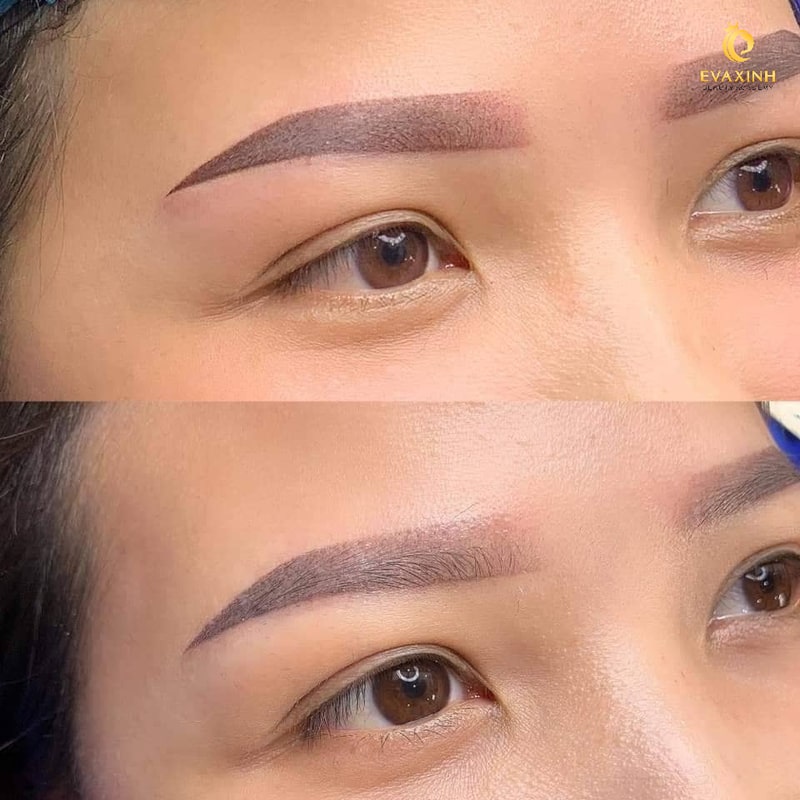 Khi đã sẵn sàng, màu mực sẽ được pha chế phù hợp với màu da của khách để tạo ra hiệu ứng thật nhất. Tiếp theo là bước phun xăm, nơi đầu kim siêu nhỏ sẽ nhẹ nhàng đưa mực vào da theo từng sợi, tạo hình lông mày như thật. Thông thường, toàn bộ quy trình này mất khoảng 2-3 tiếng, trong đó phần lớn thời gian dành cho việc chọn hình dáng và màu sắc.