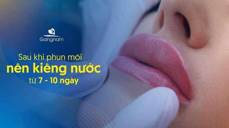 Sau khi xăm môi, việc kiêng nước là rất quan trọng để môi nhanh lành và lên màu đẹp. Thông thường, bạn nên kiêng nước khoảng 7 đến 10 ngày để lớp da non trên môi có thời gian hình thành và bong tróc lớp da chết một cách tự nhiên. Trong 24 giờ đầu tiên, tuyệt đối không để nước tiếp xúc với môi để tránh vi khuẩn xâm nhập gây viêm nhiễm.