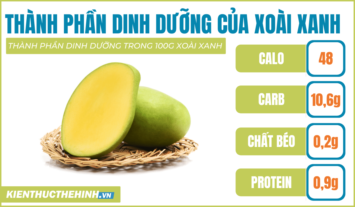 Xoài là một loại trái cây được ưa chuộng bởi hương vị ngọt ngào và hàm lượng dinh dưỡng phong phú. Tùy vào trạng thái chín hay xanh, hàm lượng calo trong xoài cũng có sự khác biệt. Cụ thể, trong 100g xoài xanh chỉ chứa khoảng 50 calo, điều này làm cho nó trở thành lựa chọn lý tưởng cho những ai đang muốn duy trì cân nặng hoặc giảm cân.